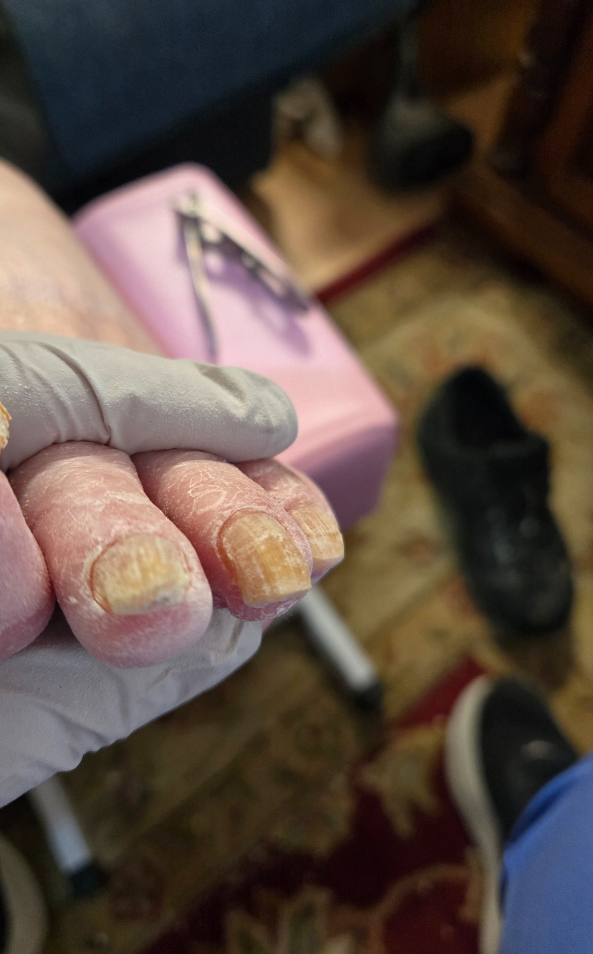 These services are more expensive than salon nail care because they cannot be safely performed by a standard nail tech, even if licensed. I am both a Licensed Nail Technician and a Podiatric Medical Nail Technician (MNT), providing the same level of care you would receive in a podiatrist's office — but at a more affordable rate.